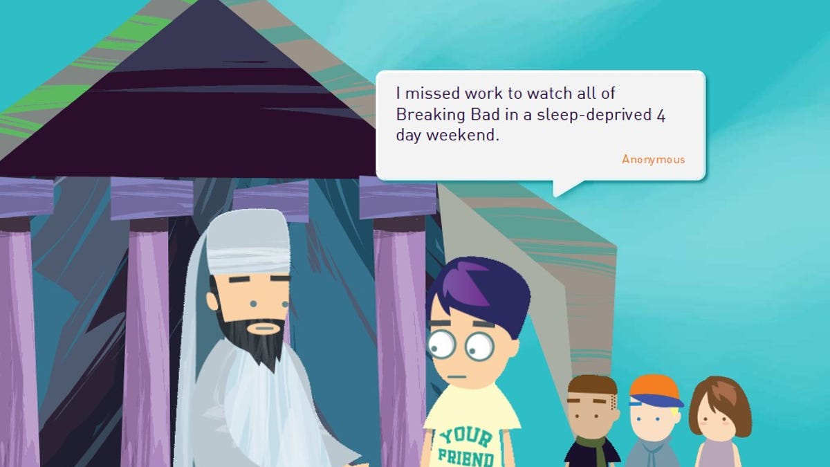 "I missed work to watch all of 'Breaking Bad' in a sleep-deprived 4-day weekend," reads one confession on the site. Reads another, "Sometimes I hire a babysitter just so I can go sit in my car."