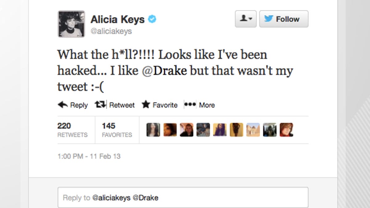 Or might there be some tragically Drake-obsessed hacker who got hold of her password and thought it might be imperative to tinkle upon Keys' reputation?