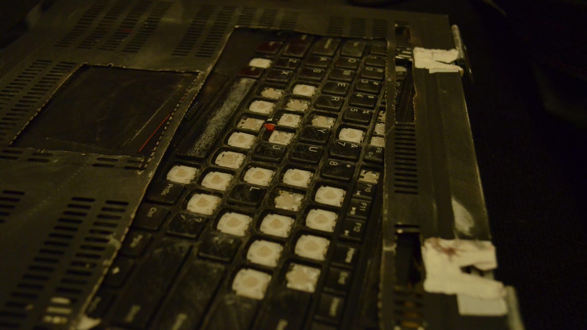 Dan Hoetger is behind one of those Toughbooks, which he bought on eBay for about $30, specifically for the contest. In the line to get in, he told me he didn't expect it to survive.