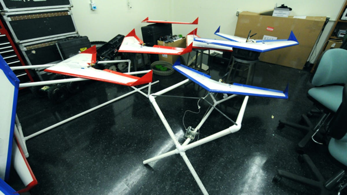That's why Chung's Advanced Robotics Systems Engineering Lab -- ARSENL for short -- has been working for some time now on developing a swarm of low-cost, lightweight autonomous flying vehicles known as Aerial Battle Bots (see video below) that are designed to work together against a common foe. That's particularly true, he explained to me when I visited his lab yesterday as part of my CNET Road Trip 2012 project, because there is no reason to think that America's enemies might not also be able to field their own swarm of 50 UAVs.