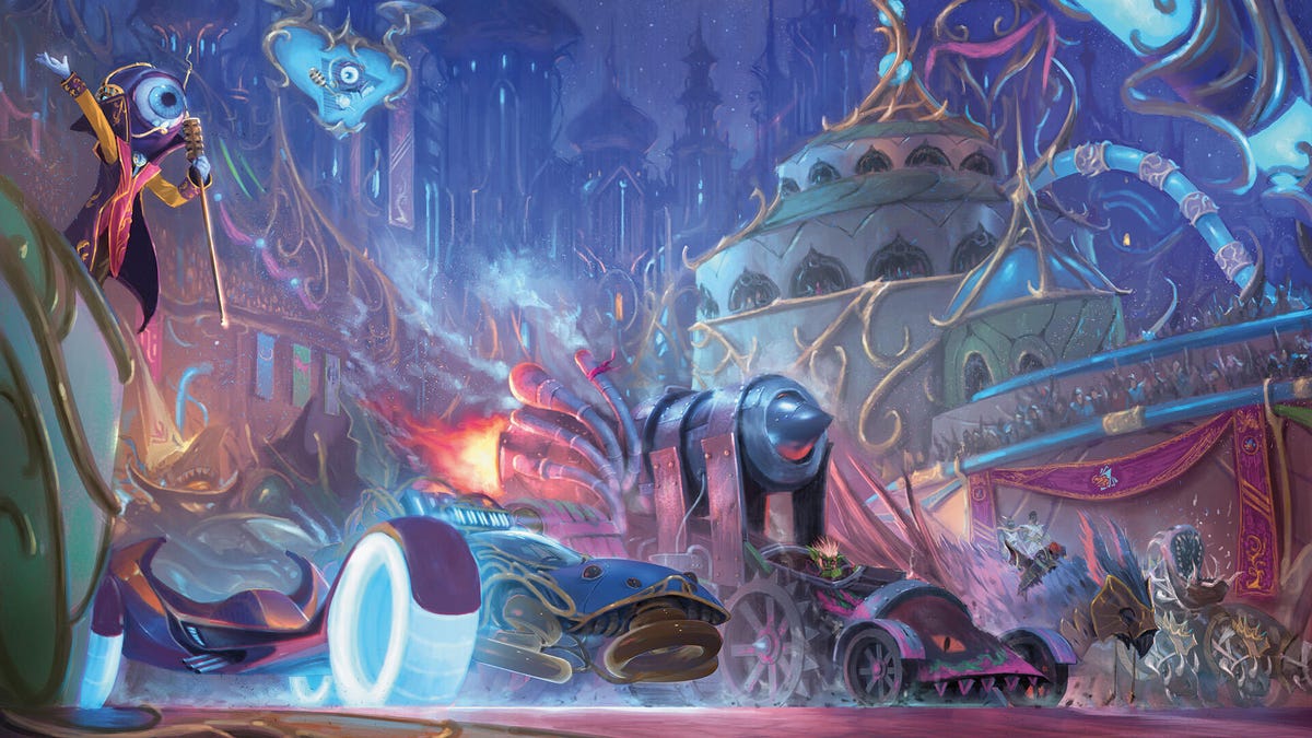 The upcoming Magic: The Gathering Aetherdrift set takes players back to the plane now known as Avishkar, previously known as Kaladesh. There's a high-speed race taking place across multiple planes, including Amonkhet and Muraganda, with racers competing for the Aetherspark, a device that allows the use of a planeswalker spark.Â
