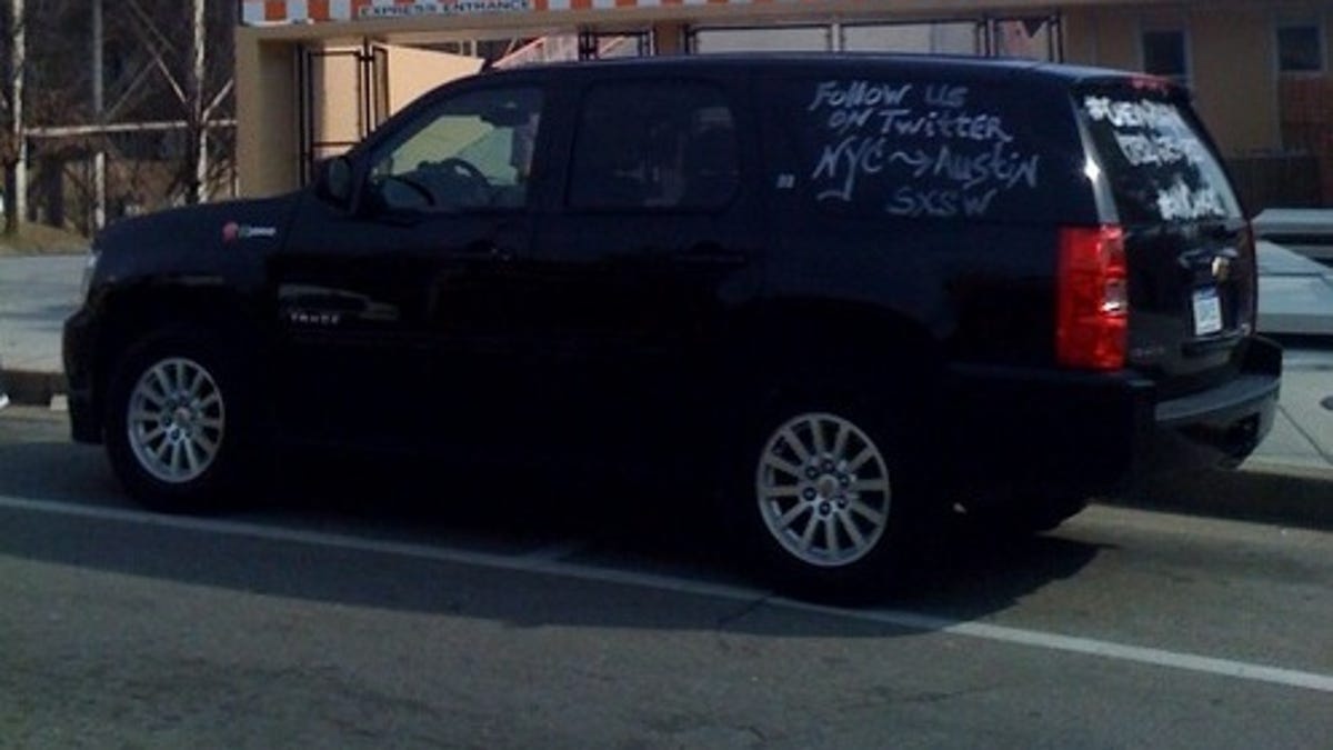 A sponsor of the festival, Chevy is going all-out with just about every variety of social media campaign imaginable: it's commissioned eight cars full of prominent bloggers and Twitter users to drive from their hometowns to Austin, naturally tweeting and TwitPic'ing their every move. (One of the members of the New York team, ubiquitous downtown party photographer Nick McGlynn, has been posting updates from the squad's Chevy Tahoe hybrid like "PANCAKE ON A STICK!")