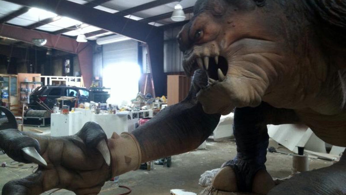 The replica Rancor, created by "Star Wars" costuming group 501st Legion member Matt Paisley and Rick Bohler (owner of Pizzazz Scenic Contractors), stands 14 feet tall, measures 17 feet claw-to-tail, and weighs more than 700 pounds. Those attending the convention can have their photo taken within the claws of the beast and even clutch a massive prop bone to "kill" the Rancor.