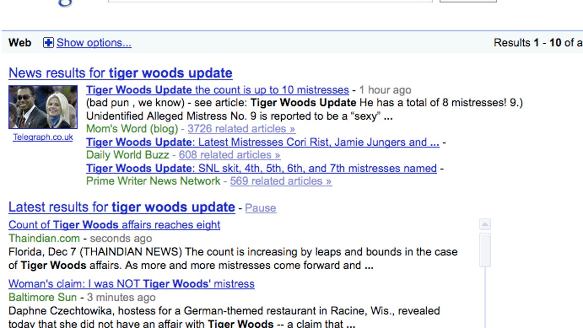 Updated 12:42 p.m. PST: Marissa Mayer, Google's vice president of search and user experience, said real-time search took Google somewhat by surprise. "I wish we'd had the foresight to see this," she said.