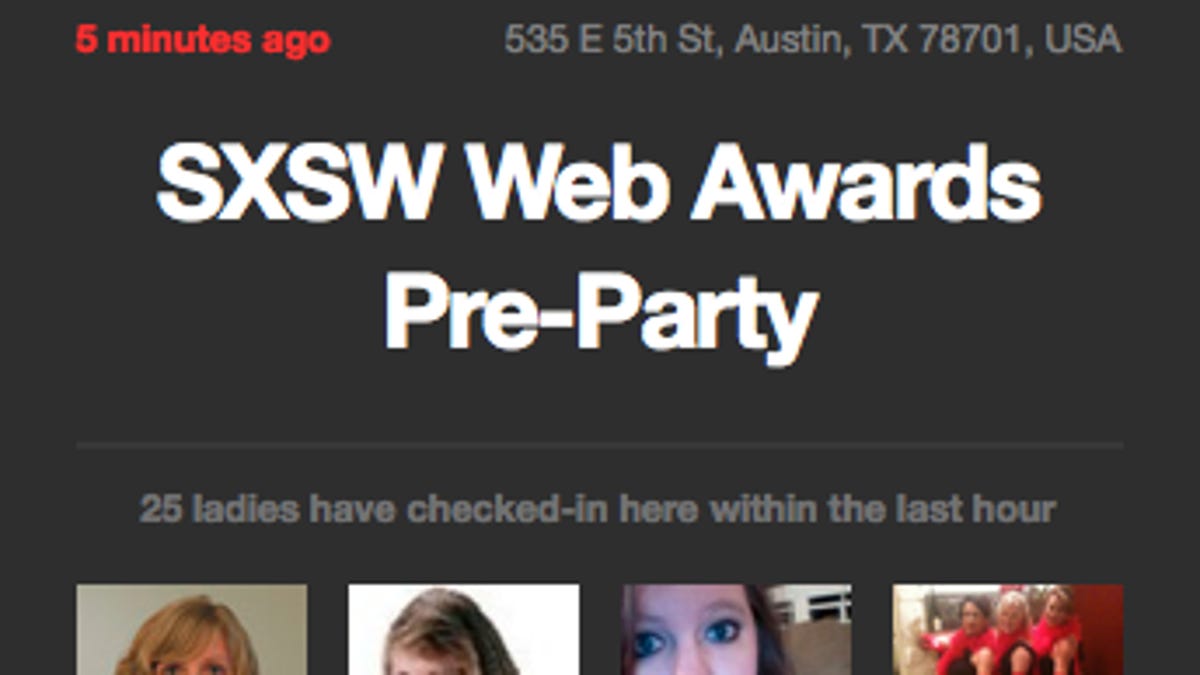 Enter Wheretheladies.at, a gag on behalf of two Digg employees, Jeff Hodsdon and Danny Trinh. It's a SXSWi map mashup in the manner of Vicarious.ly, but it cuts right to the chase: It tells you where to find girls. The map aggregates public Foursquare check-ins at SXSWi from female users--Hodsdon said in a Twitter post that it guesses gender based on first name, so it's not totally accurate--and then ranks Austin venues by which ones have the most women checked in. Early on Sunday evening, it looks like it was the SXSWi Web Awards party that topped the list. (It thankfully doesn't veer into stalker territory: you can't see the names or Foursquare profiles of the women in question.)