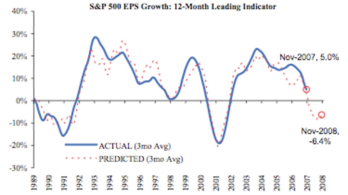...(F)or technology there are three clear earnings headwinds. First, corporate profits lead business spending on equipment and software, and more than 50 percent of U.S. business spending is tech related. More important, the sector whose earnings are most important for tech spend is financials, and a 30 percent drop in financials earnings and diminishing prospects of a rapid turnaround suggest that tech budgets are vulnerable to cutbacks. Second, tech hardware and semiconductor earnings are highly leveraged to utilization. Slowing order momentum as corporate tech spend slows and consumer discretionary spend weakens will force utilization rates lower. Finally, the sector has the highest exposure to foreign earnings and has been a huge beneficiary of dollar weakness. A turnaround in the dollar will be an added drag.