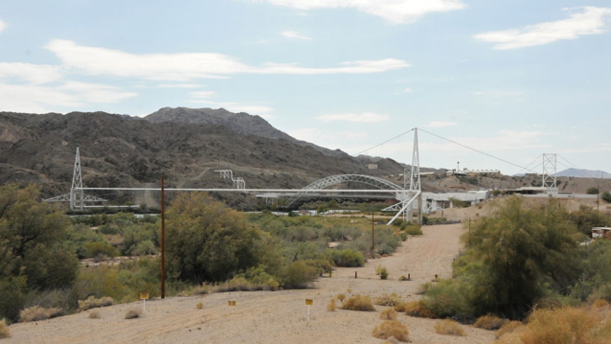 Update (Sunday, 1:08 a.m. PT): The answer to Saturday's challenge -- which 53 people got right -- is the Old Trails Arch Bridge, as well as other pipeline bridges that span the Colorado River (and the border between Arizona and California) between Needles, Calif. and Topock, Ariz. Thanks to everyone who played, and to all, please come back for Sunday's challenge.