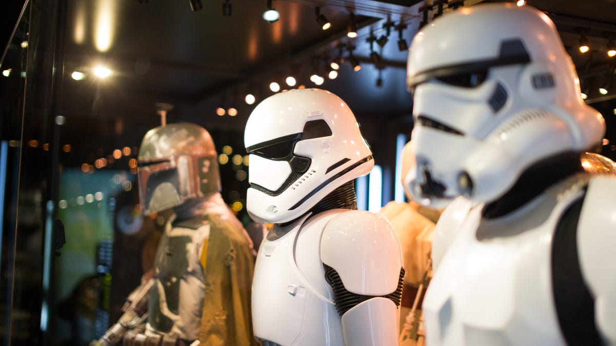 The exhibits are collected from the original and prequel trilogies with a couple of trinkets from the newer movie "The Force Awakens" thrown in. Displays include the actual costumes worn by Carrie Fisher, and , not to mention the costumes, helmets and uniforms of Boba Fett, C-3PO and Darth Vader. And you get to see cute droids R2-D2 and BB-8 side-by-side.