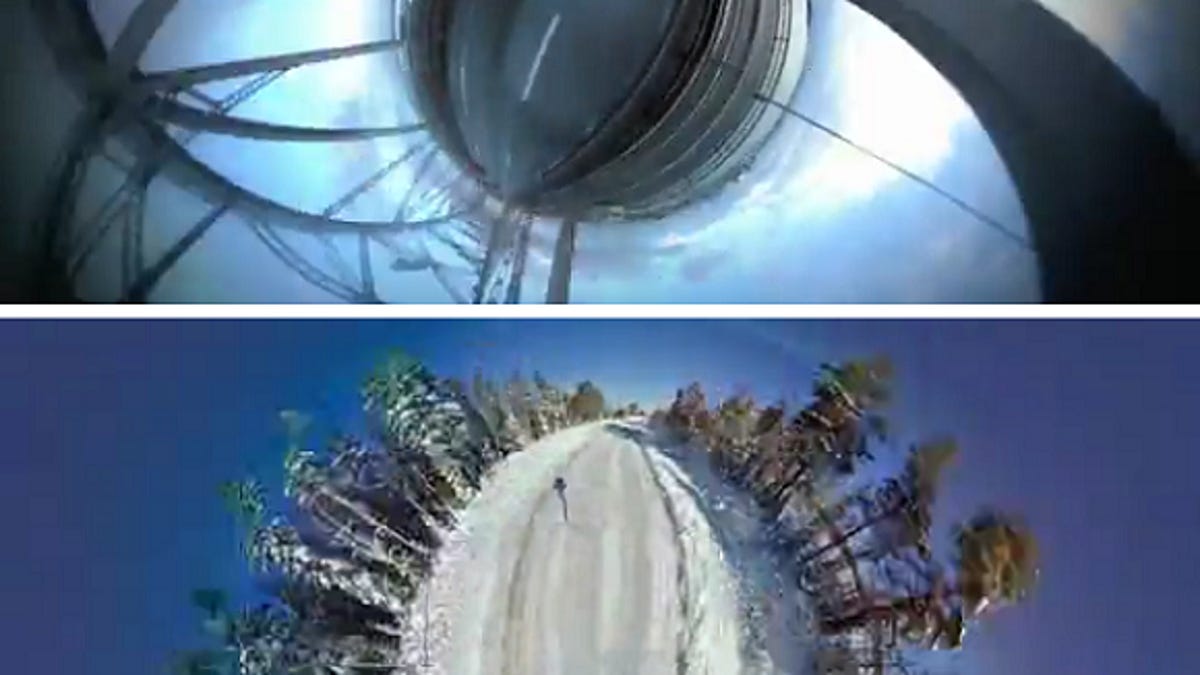 We found another example that cropped up here and there earlier in the year, the literally titled "Street View Stereographic animation," posted on YouTube by Heathsplosion and created using Street View Stereographic (a tool that lets anyone make Little Planets out of Street View images -- and presumably the tool Miceli used). (If you're browsing with a WebGL-supporting browser such as Chrome, you can check out the tool directly here.)
