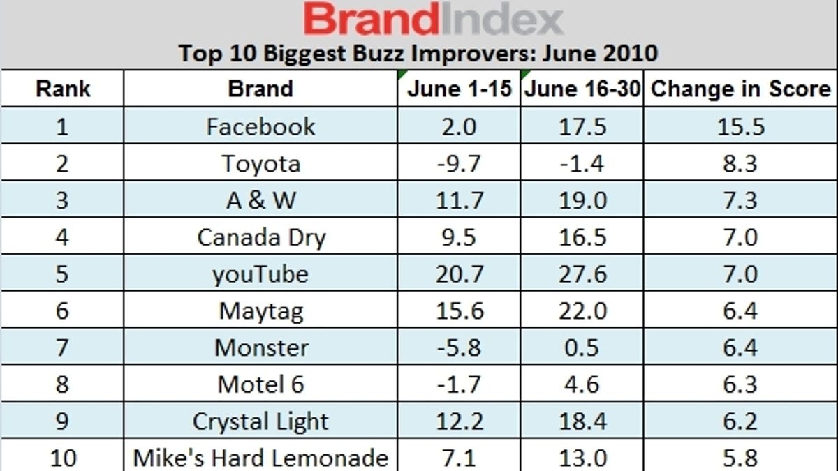 Facebook climbed from a YouGov rating of 2 in the weeks of June 1-15, to 17.5 in June 16-30. To put things into perspective, YouGov's ratings span from -100 (completely negative) to 100 (completely positive). Is it going to be 100 percent accurate? No. But it does fall into line with what's been pretty evident on an anecdotal level--that Facebook has weathered yet another momentary PR fiasco.