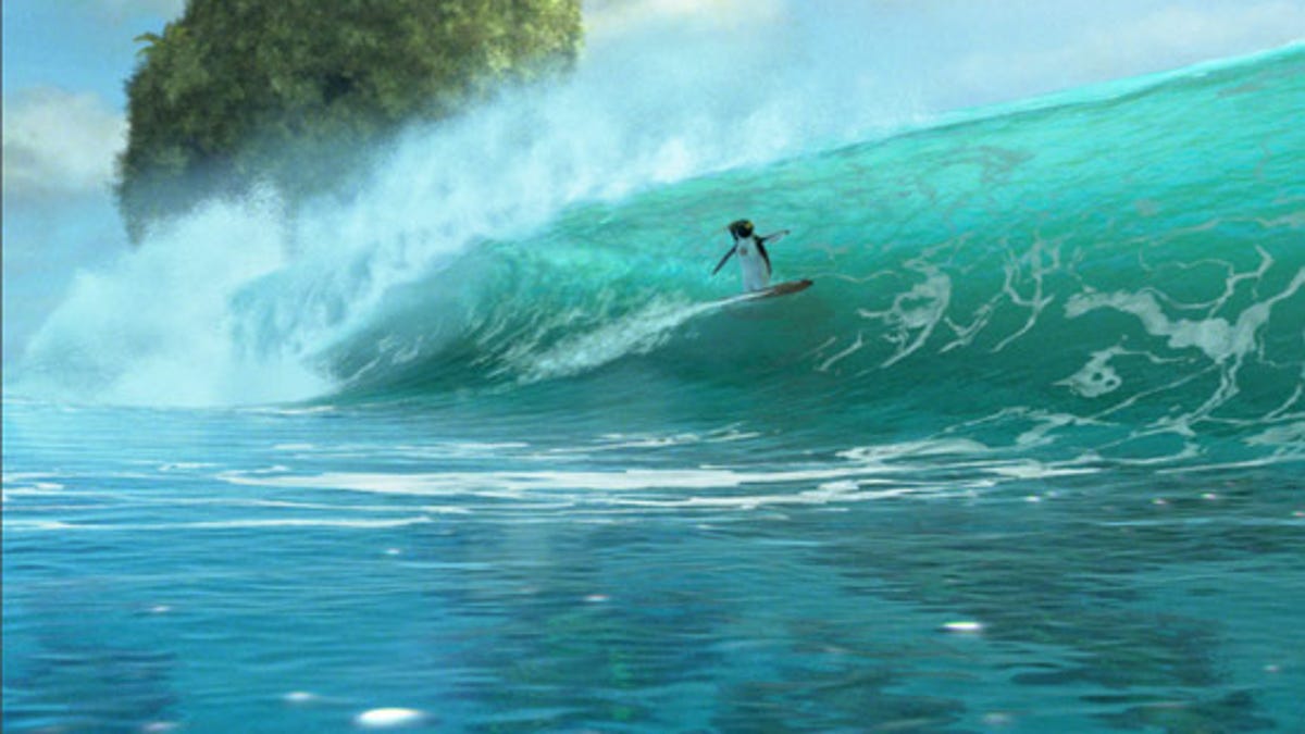 CULVER CITY, Calif.--One of the things that struck me towards the end of the animated surfing penguin mockumentary, Surf's Up, is that I had forgotten that every bit of water in the film--mainly loads of lovingly rendered surfing waves--was digitally animated.