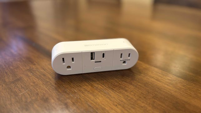 The most versatile of these devices is the Emerson SmartVoice smart plug, so I decided to test the largest one they had. This 4-in-1 plug ($35) not only gives you many more connections on a single outlet, but it also lets people use voice commands right out of the box -- no app required.