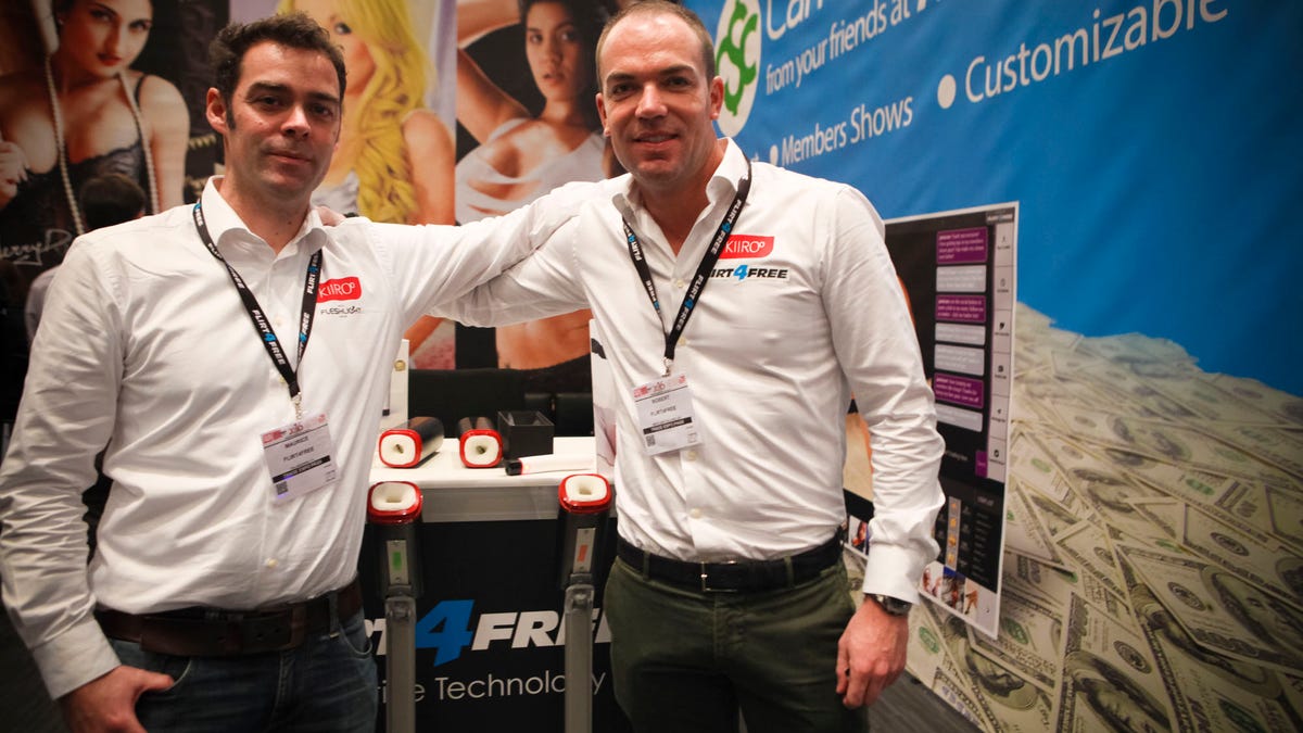 Standing about a foot away, the tall, bald and unabashed Dutchman strokes a lily-white rubber dildo that, via the magic of the Internet and a smartphone, syncs up with a "fleshlight." Never heard of it? Think of a hollow flashlight lined with silicone that feels like a ... well, you know.