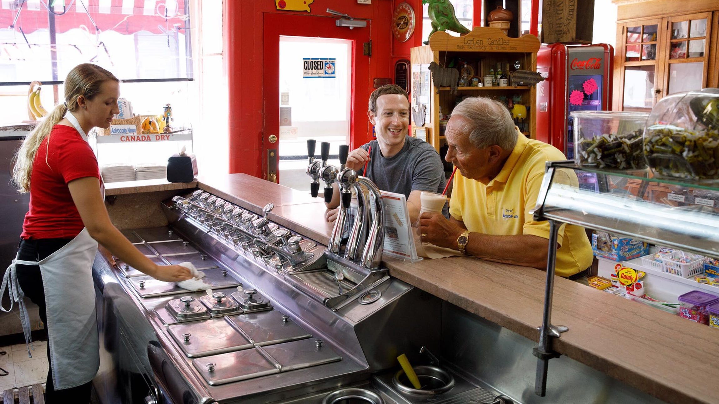 It's a world away from the scene here three years ago, when Mark Zuckerberg walked in on a hot June day. As one of his famous New Year's challenges, the Facebook CEO had vowed to travel to every state he hadn't yet visited. One of those places was Iowa, and the Wilton Candy Kitchen, a two-hour drive east of Des Moines, made for the perfect photo op. Tatum Oveson, then a 16-year-old high school student working behind the counter, served the tech billionaire a chocolate malt. Zuckerberg asked about her future. She told him of her dreams to move to Georgia and become a dental hygienist.