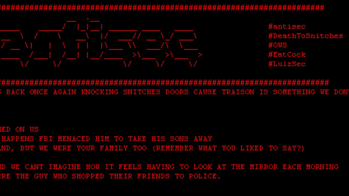 "Yeah yeah, we know, Sabu snitched on us. As usually happens FBI menaced him to take his sons away. We understand, but we were your family too. (Remember what you liked to say?)," reads a note posted to the site. "It's sad and we can't imagine how it feels having to look at the mirror each morning and see there the guy who shopped their friends to police."