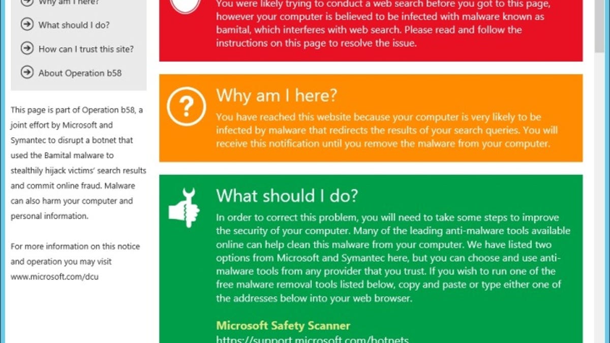 "The more we do these operations, the more it becomes evident in the underground community that we're onto them," Boscovich said. The collaboration between Microsoft and Symantec, as well as the particular way that the Bamital botnet was structured, allowed the two companies to do more than just shutter the botnet and warn Internet service providers.