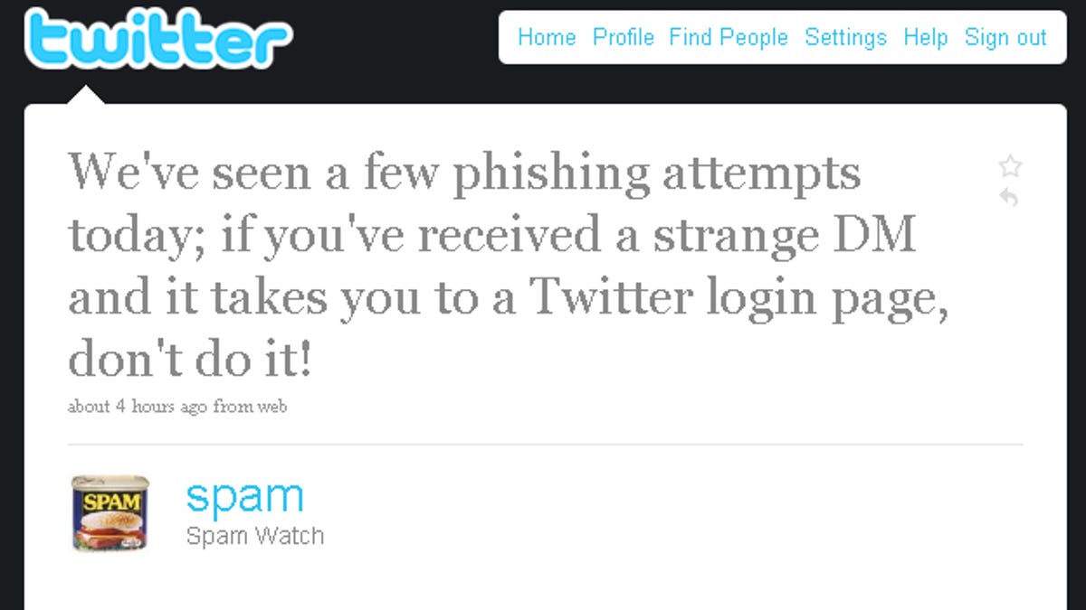 "We've seen a few phishing attempts today; if you've received a strange (direct message), and it takes you to a Twitter log-in page, don't do it!" the Twitter spam warning says.