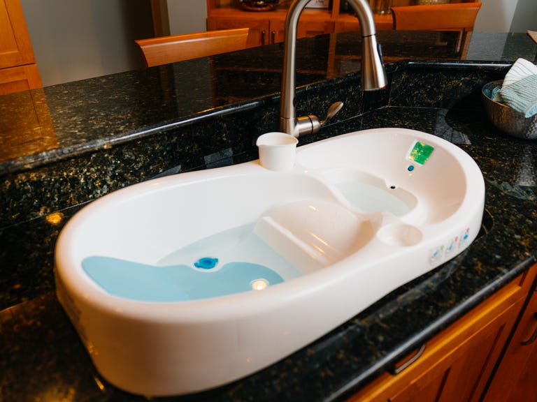 If you've had a baby, one of the gifts you probably got at the shower was an infant tub. They're bulky, usually colorful, plastic bins that might feature netting to cradle the baby, or a foam pad to keep them from slipping around. And if you've tried to use one of these before, you probably know it doesn't make baby baths much easier. Once you're a few weeks into parenting, with sleep running low and stress running high, you're probably as likely to just use the sink as a bathtub as you are to pull out one of these tubs.