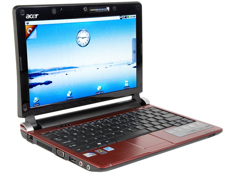 The D250, despite the inclusion of Android, is pretty ordinary to look at. The red finish (glossy on the lid and matte on the inside) is pretty unusual, but the 10.1-inch, 1,024x768-pixel screen, Intel Atom N270 CPU, 1GB of RAM, and 160GB of storage are all par for the netbook course. As a result, the D250's performance is like that of pretty much every other netbook in its class. Battery life is above average, however, thanks to a large, six-cell battery. In Battery Eater's intensive Classic test, the D250 lasted for 6 hours and 21 minutes while running XP.