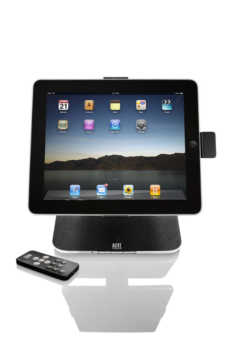 Altec Lansing has geared this accessory ($149.99 list) toward people who want to watch video on their iPads--whether it be in the kitchen, bedroom, or anywhere else--and the company has built the speaker with that in mind. The company says its Audio Alignment technology "provides distinctive center channel voicing and enhanced stereo delivery for distortion-free performance even at full volume." The system also has a 3.5mm auxiliary jack for connecting additional audio sources.