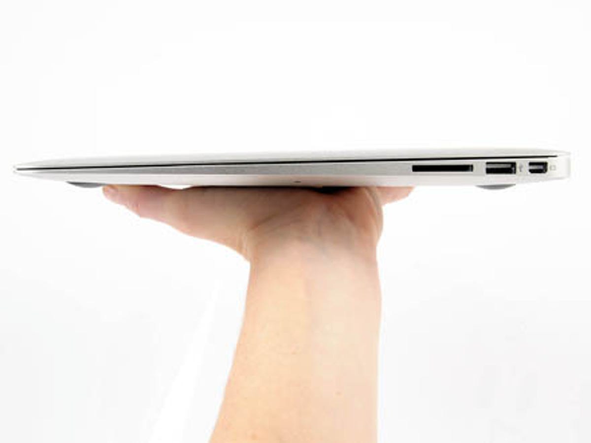 As you might have guessed, that makes the Air slightly wedge-shaped. It's an astonishingly slim wedge, but there's a definite taper down to the 3mm front lip. This laptop is thin enough to shave with, snowboard on and, if you possess the requisite arm strength, skim across a lake.