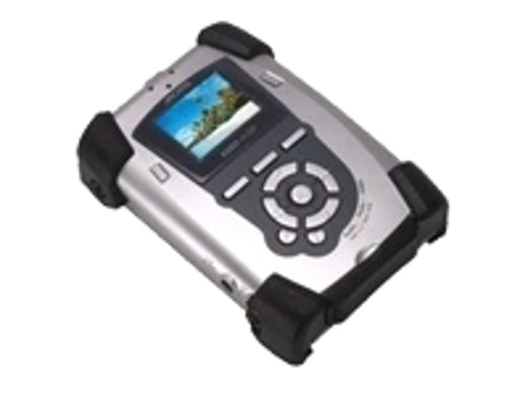 The sound for the video recordings we made was captured in MP3 stereo at a sampling rate of 44.1kHz and a bit rate, somewhat unexpectedly, of 191Kbps. Audio-only recordings also use the MP3 format, but they record at one of seven VBR settings for increased efficiency from the surprisingly decent built-in microphone, analog line input, or coaxial (as opposed to optical) S/PDIF cable. That, and most other features, work the same way they did in the Multimedia 20. The AV120 uses the same $100 camera module as its predecessor to shoot stills and low-grade MPEG-4 movies, but Archos has redubbed it the Camera 100. (The upcoming AV140 and AV340 models will support a new flash-camera module that the 120 does not.)