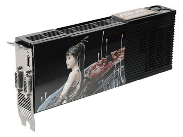 While it's clearly a gaming product, Asus has made its particular EN9800GX2 package relatively easy to use for anyone looking to use its card for PC-based movie watching as well. In addition to the two DVI video outputs, Asus also includes an HDMI output on the back of the card. Nvidia's chips still require you to connect an internal cable to the graphics card from your PC's audio chip if you want to send the sound over the HDMI port along with the video. To that end, Asus also threw in the necessary passthrough cable, and it clearly labels the appropriate port on the card. You'll also find a copy of the real-time strategy PC game Company of Heroes: Opposing Fronts in the box, so if you're anxious to try out some DirectX 10-enabled content, you can do so as soon as you get the card installed.
