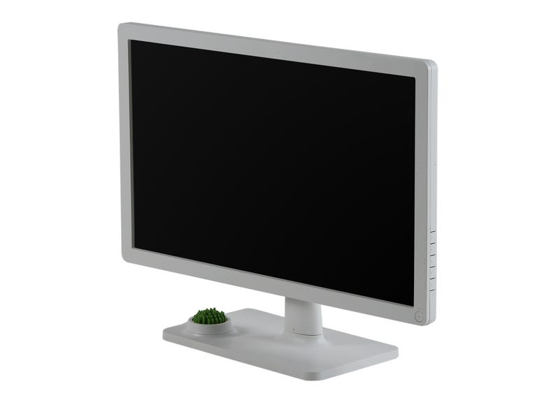 The bottom of the display's bezel sits about 3.75 inches from the desktop. Unfortunately, you can't adjust the screen height, and there isn't a screen rotation or pivot option for portrait mode. The capability to tilt the screen back 20 degrees is the only included ergonomic feature. On the top of footstand is a small round pocket that looks almost like a cup holder. In it, BenQ has placed a removable small white cup and in it, plastic green grass. According to BenQ, the spot is perfect for "small keepsakes or mini plant pot"; however, we don't advise planting anything that would require pouring water into your $350 monitor.