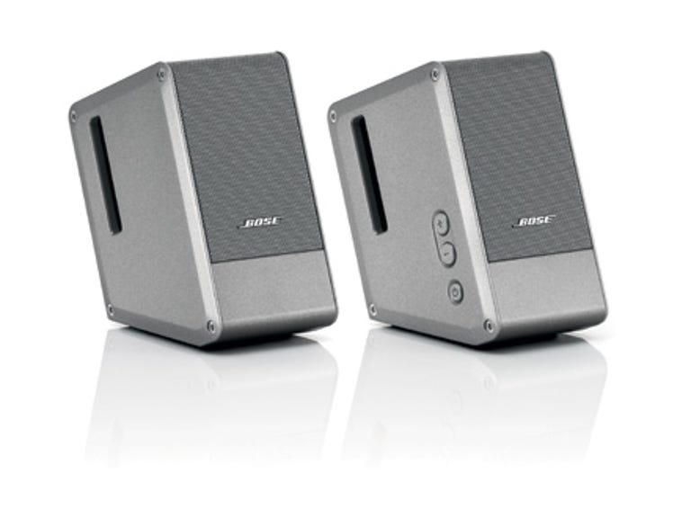 As an upgrade to laptop speakers, the Bose Computer MusicMonitors will do nicely. They're compact, good looking, well built and relatively portable -- if you don't mind toting the power brick around. But they are very expensive.