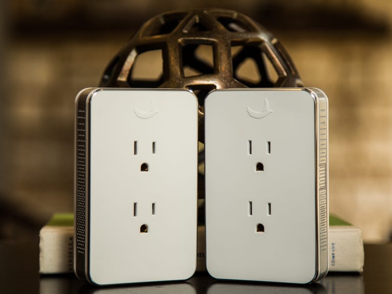 Nightingale is literally just two smart plugs outfitted with color-changing night-light LEDs and speakers. They connect to the related iPhone app over Wi-Fi or Bluetooth (there's currently no Android support). Install them on opposite sides of your room facing each other to create an immersive stereo effect Cambridge Sound Management refers to as "sound blankets." Because Nightingale is a smart plug, you still have full access to your outlet for lamps, alarm clocks and other electronic devices.