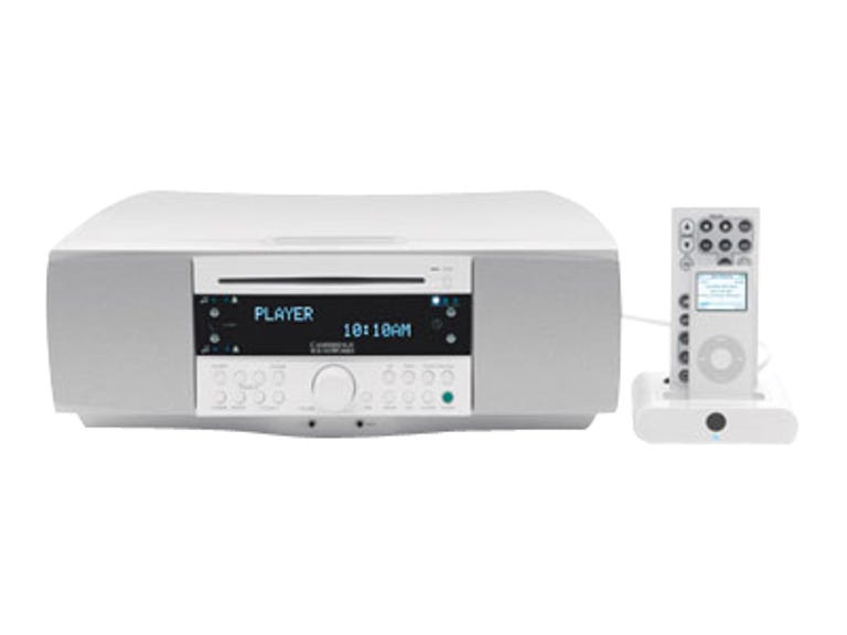 The iPod dock itself is a proprietary module designed to work only with the Radio 745i. Cambridge throws in some dock adapters to fit popular iPod sizes, and it will accept any first- or third-party standard adapter as well. In addition to the hard-wired cable that connects the dock to the main Cambridge radio, the dock offers composite and S-Video outputs for connecting to your TV--a nice option not always found on audiocentric iPod-compatible products. The dock also has its own remote sensor for picking up signals from the remote control (the remote can also sit in a dedicated slot in the dock when not in use). You get full access to the iPod's menu system from the remote, but it's a pretty unsatisfying experience. Not only does the remote use a series of buttons rather than the iPod's familiar scroll wheel, you have to be almost on top of it to actually see the onscreen menus. But the ability to skip, rewind, and pause songs can be done blind, so it's not a total loss.