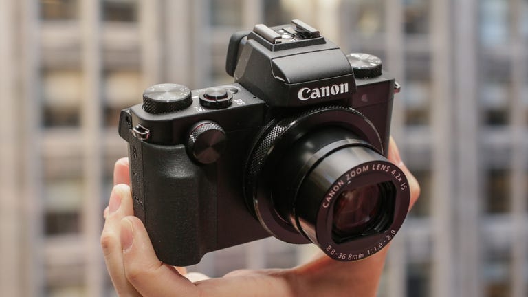 With the same 1-inch 20-megapixel sensor and 24-100mm f1.8-2.8 lens as the G7 X, the Canon PowerShot G5 X targets basically the same enthusiast photographers, but with a photo-nerdier design that includes a very nice high-resolution built-in OLED electronic viewfinder, hot shoe and a more useful flip-and-twist articulated touchscreen rather than the selfie-oriented flip-up screen. It's a fine camera, but unless the more useful display and above-average viewfinder matter most to you, then it doesn't really stand out from the pack.