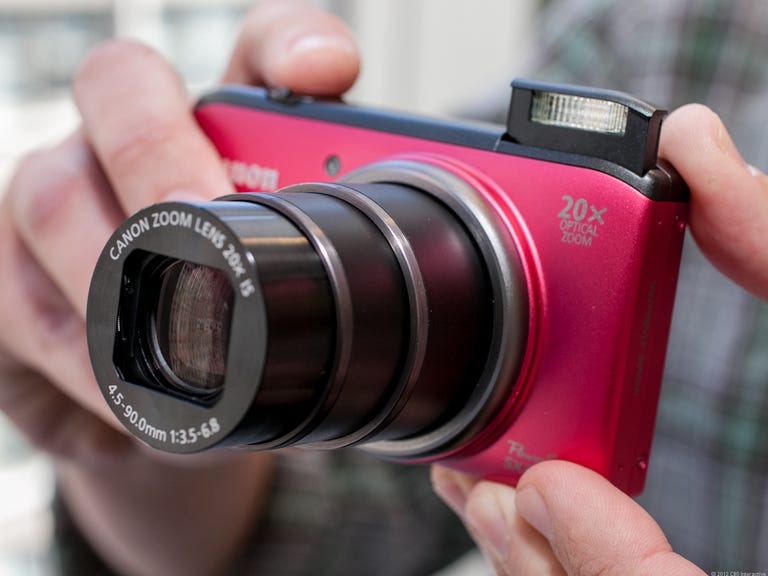 The Canon PowerShot SX260 HS replaces last year's SX230 HS, updating its lens from a 14x 28mm wide-angle lens to a 20x 25mm ultrawide-angle one. It keeps the 12-megapixel backside-illuminated CMOS sensor, but gets the new Digic 5 image processor, which helps it shoot in bursts up to 10 frames per second, among other things. The camera's GPS system is improved, too, with better location information, and Canon's made it easier to turn on and off, saving precious battery life.