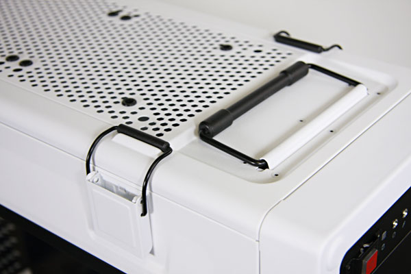 Continuing the theme, the sides are held on by clasps and the top has two carry handles — making this a decent LAN case.