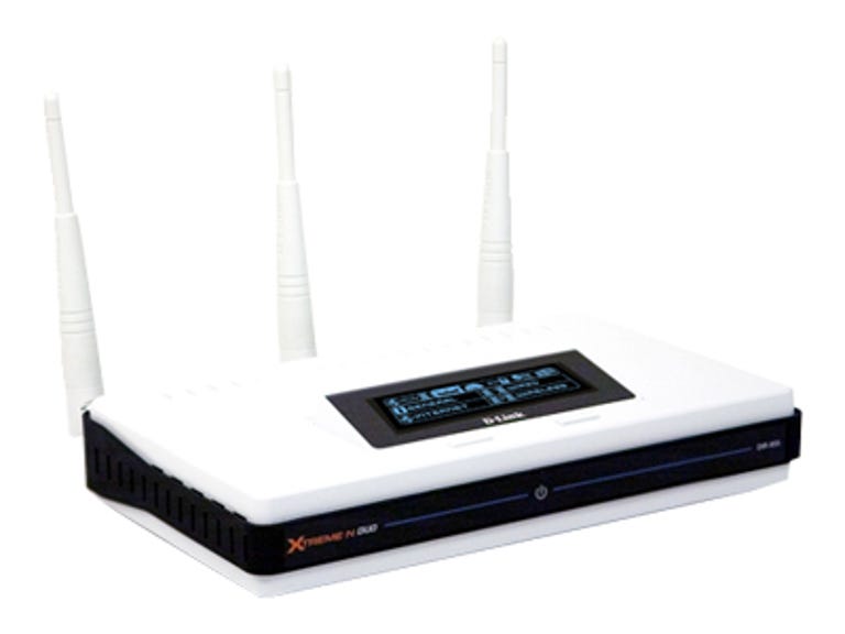 Out of the box, the D-Link DIR-855 looks like a differently colored D-Link DGL-4500 . (The DIR-855 is white, while the DGL-4500 is dark blue.) The DIR-855 has three antennas attached to the back of the router--not a good design, as they crowd the network ports. The antennae are, however, removable, in case you need to install an external high-power antenna for longer range. Like most D-Link routers, the DIR-855 is wall-mountable and also comes with a vertical mount base. Similar to the DGL-4500, the DIR-855 has a top-mounted, organic light-emitting diode (OLED) Network Activity Display (ONAD) that shows more than just the network's connection status--the two navigation buttons display WAN, LAN, and wireless information via the little blue screen. However, in our tests, the screen timed out after a minute or two. The ONAD is fun to play around with at first, and is indeed useful in a number of situations, such as checking on the Internet connection, number of wireless clients, and so on, but in the long term, you might miss the regular LED status light found on most routers.