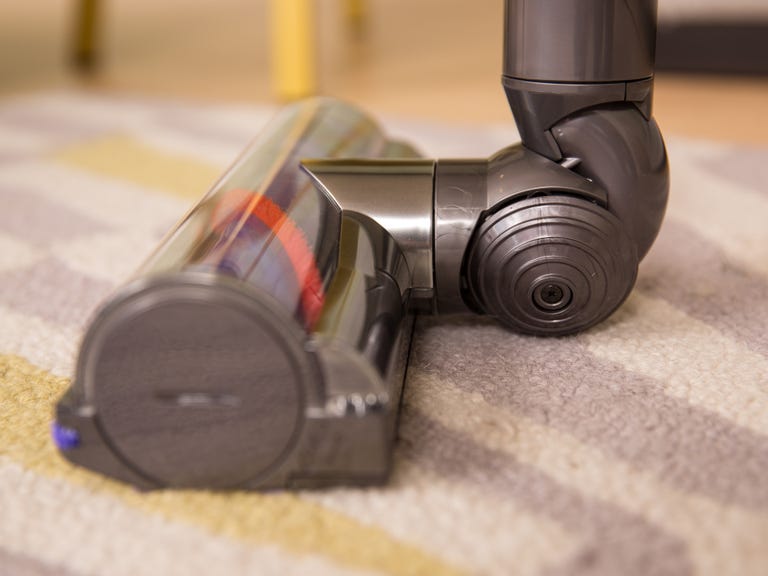 Dyson hopes to convince you that its $400 v6 Motorhead vacuum cleaner can replace your upright. The name "Motorhead" comes from a brush roll that spins via a separate, low-power engine with the intention of increasing carpet agitation and fine particle pickup. The resulting performance on our sand test bested the original v6, the excellent Hoover Linx , and many stand-up vacs as well, but it's still not at the level of the top full-size models -- the Oreck Touch Bagless and the Electrolux Precision Brushroll Clean . The widened head of this newest Dyson model allows it to pick up more dirt at once, but that often results in jams with larger particles, leading to lower performance numbers on this test than either the v6 or the Linx managed. The powered brush roll also decreases the battery life, and the v6 already didn't hold a charge as well as its competitors.