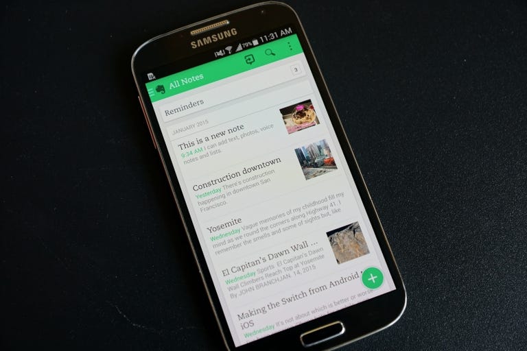 The Android and iOS apps are great for both reading notes you've already created on Evernote's desktop apps and website, and creating new content on the fly. There are many ways to create notes and collections of notes, called notebooks. With a tap of the plus sign, which appears throughout the app, you can start typing out a new note quickly, adding formatting as you go.