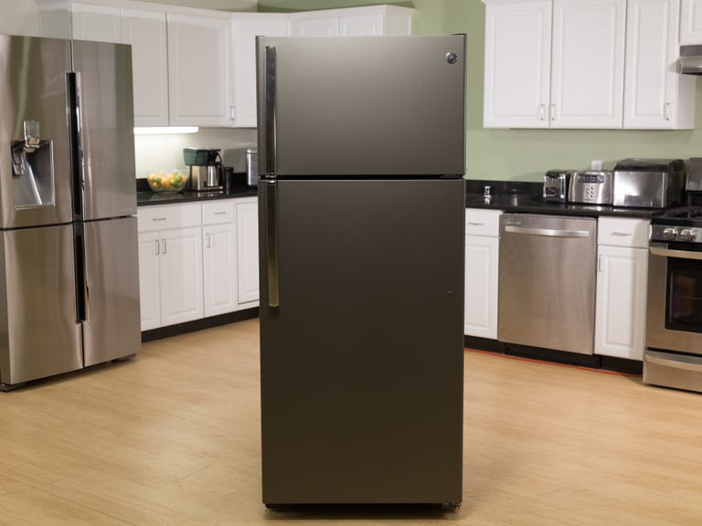Shopping for a budget fridge usually means settling on a boring build that's devoid of design-minded features. True to form, the $800 GE GTE18GMHES top-freezer fridge is nothing fancy, but it at least looks the part of something slightly less frugal, thanks to a distinctive slate finish.