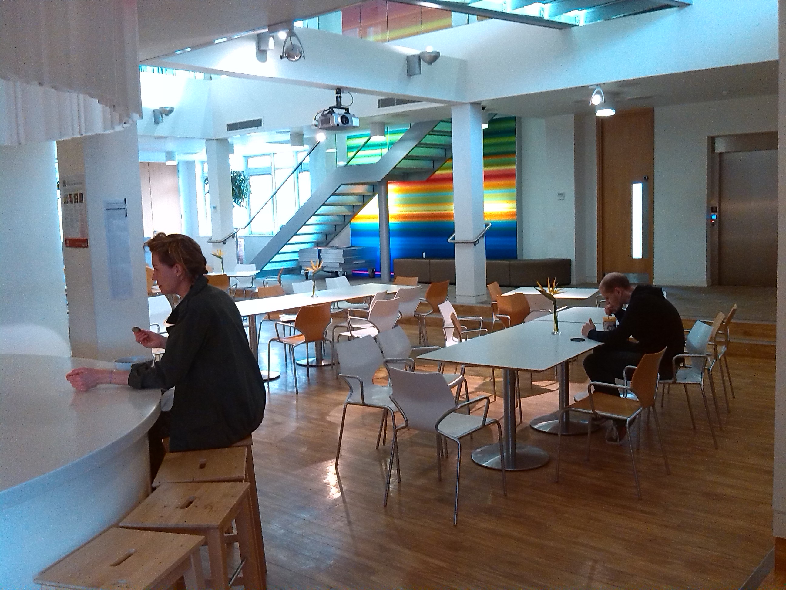 The image doesn't hold up quite as well when you take a look full-screen on a monitor. It lacks the clarity you'd hope to see on even a 5-megapixel camera -- it's particularly noticeable in the distortion around the pillars in front of the rainbow artwork. The (more expensive) Nokia Lumia 720's 5-megapixel camera performed much better in the same scene.
