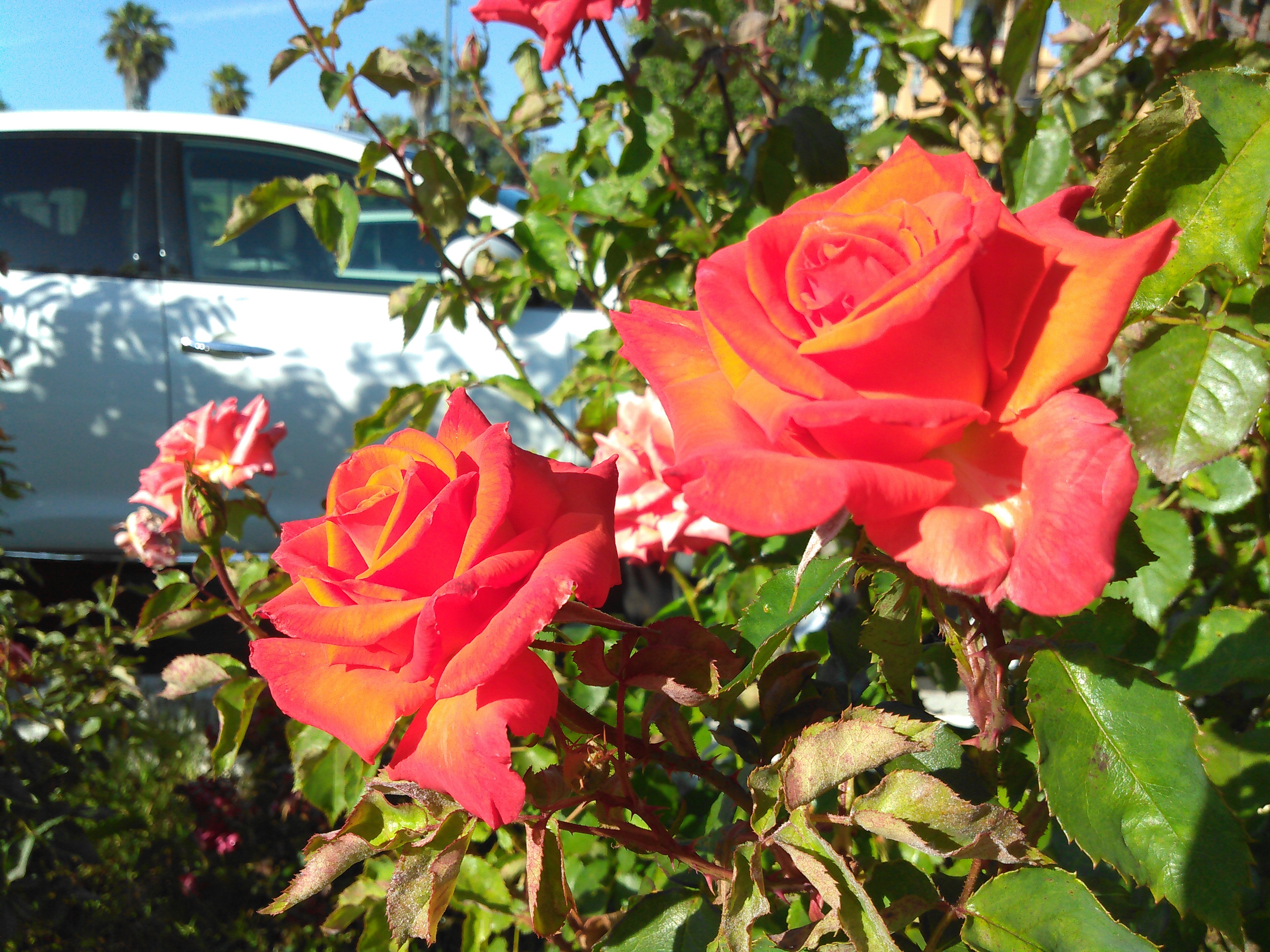 After multiple trials, I was finally able to snap a clear picture of these roses. Only the left one and a few of its leaves came out sharply, however.
