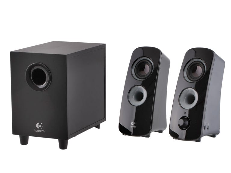 The $70 Logitech's Z323 is one of four speaker sets the company has recently released that include a subwoofer. The three-piece 2.1 speaker system also has Logitech's "360-degree sound" feature that uses two tweeters mounted on the front and back panels to project sound in all directions. Unfortunately, the speakers sound flat and lack low-end audio, even with the adjustable bass turned up.