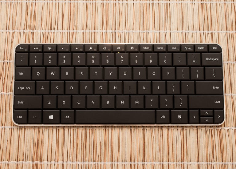 The keyboard itself has shallow, tapered keys with a 17.5mm key pitch, close to that of a full-size desktop keyboard (typically 18mm to 19mm). Typing on the Wedge Mobile Keyboard simply feels right; the keys have satisfying bounciness without feeling mushy. The biggest size sacrifices come with the supersmall arrow keys and the function row keys. There is also no number pad, but you do get a series of four Windows 8-specific hot keys, Search, Share, Devices, and Settings, each mapped to a "charm" icon function in Microsoft's new operating system (I'll let