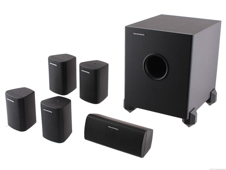 Encouraged by what we were hearing, we popped in the "Master and Commander" Blu-ray and cranked up the naval battle scenes. The Monoprice system played fairly loud without overt distress, and when the cannon balls crashed through the sides of the wooden ships, the system delivered the sonic assaults with gusto. The quieter scenes' dialogue sounded natural, and the wind and surf seemed to come from all around us. The five small speakers created a fully enveloping sound field in the CNET listening room.
