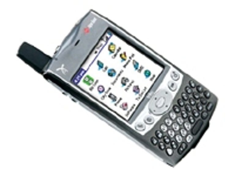 The jog dial on the side is gone, replaced by volume buttons for the ringer and the phone only. A separate switch atop the Treo turns all device sounds on and off; with the latter, the mobile goes into vibrate mode. Also on top is a power switch, an SDIO expansion slot for adding memory or accessories such as a Wi-Fi adapter, and a metal stylus. At the opposite end is the headphone jack, which unfortunately uses the space-saving minijack that we've derided on other compact PDAs such as the HP iPaq 1940. On the back are the VGA camera lens and a second speaker tuned specifically for the vastly improved ring tones and alarms, as well as the speakerphone. While no cradle is included, this is a relatively minor omission, considering most people will be satisfied with the compact charger and USB syncing cable.