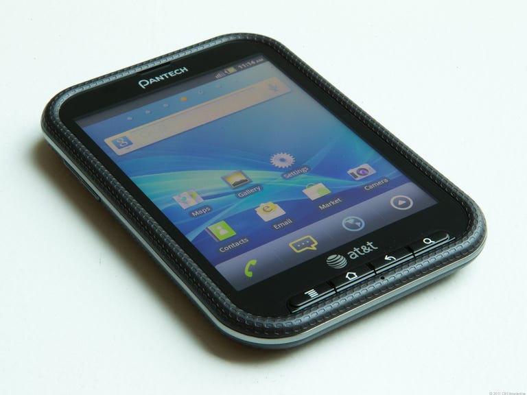 Getting back to the design, you'll find four physical buttons below the display. They call up the menu, home, back, and search. They rise above the surface and are responsive, but are a little too narrow for my tastes. On the right spine sits the Micro-USB charging port. The volume rocker is on the left, and up top are the 3.5mm headset jack and the power button. I wish Pantech had been less thrifty with the button's size. I wouldn't call it uncomfortable, but a larger or shapelier button might feel better under the fingertips.
