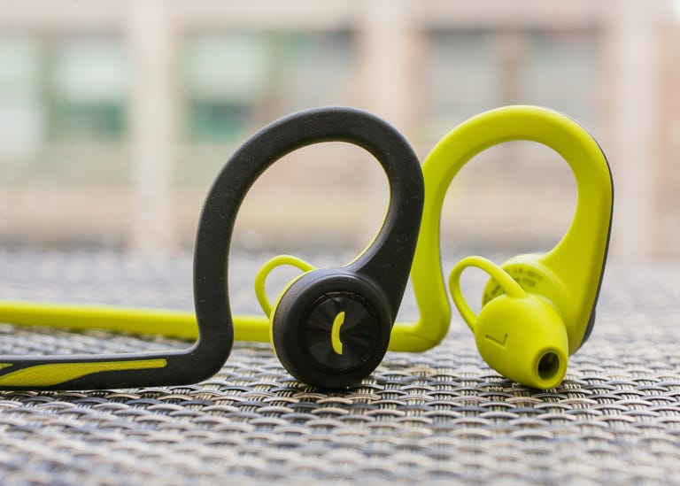 The buds are connected with a flexible band and the whole package is sweat-proof. For me anyway, they fit securely and I though they were comfortable to wear after I fiddled around with the angle of the tip. True, anytime you have a headphone that you stick in your ear, it's not going to end up being a perfect fit for everyone. But Plantronics seems to have learned from its experience creating previous BackBeat wireless sports models, including the BackBeat 903+.