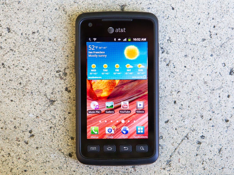 If you're looking for a rugged handset, I highly suggest the Samsung Rugby Smart by AT&T. Its design is still thick compared with regular, more-fragile smartphones, but it's not overly cumbersome and doesn't look like an ugly rubber brick. Its responsive AMOLED screen makes graphics incredibly bright and crisp, and the camera comes with tons of features. Most importantly, the device does what it's supposed to do: take a tough beating and live to tell about it.
