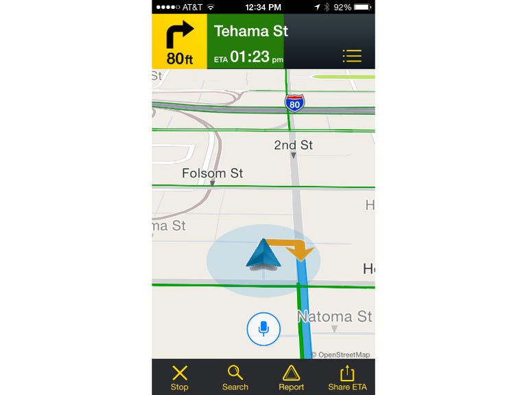 For turn-by-turn directions, Scout is as good as any navigation app I have used. Limited to the relatively small screen of a phone, it showed the map with turn guidance in a graphic at the top. I could also tap a button to show the list of turns for the route. Of course, more useful when I was driving was voice guidance, which had a pleasant voice telling me where and when I needed to turn.