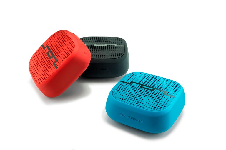The Sol Republic Punk's claim to fame is that it plays louder than your typical tiny wireless Bluetooth speaker, with 6 watts of power. It's also water- and shock-resistant and offers 8 hours of battery life, with a 60-foot (18m) wireless range, around double the usual range for Bluetooth devices.