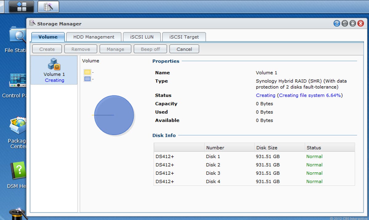 Running the DiskStation Manager (DSM) 4.0 operating system -- and upgradable to future versions, such as the upcoming DSM 4.1 -- the new server offers a vast number of features with a stellar Web interface that operates much like a native operating system. Like all Synology NAS servers, the DS412+ turns even the most complicated tasks of a server into a walk in the park for intermediate and advanced users. For home and novice users, however, the DS412+ isn't as easy to use.
